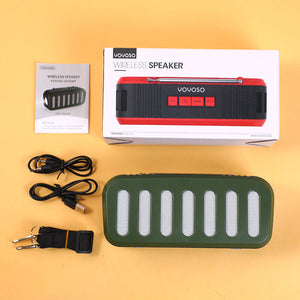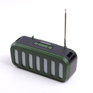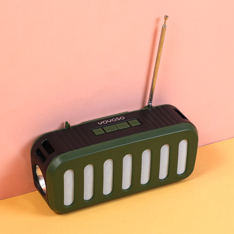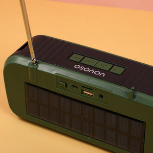 Altoparlante wireless con antenna, pannello solare e torcia elettrica, verde