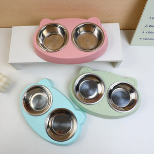 Set di ciotole doppie in acciaio inossidabile Cat Face