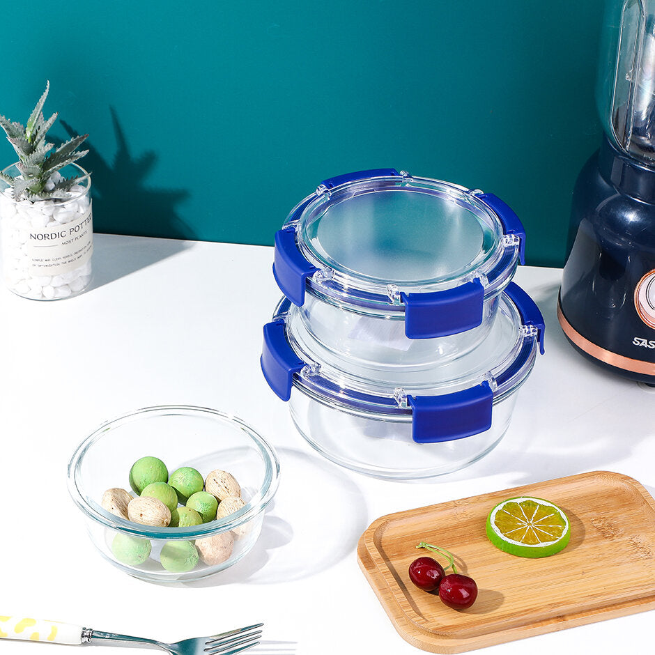 Homepage Articoli da cucina Contenitore rotondo in vetro per alimenti freschi con chiusura a fibbia 950ml