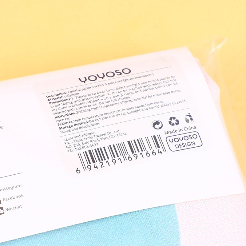 Serie di motivi colorati Set da 3 pezzi (guanto+PRESINA+GREMBIULE)