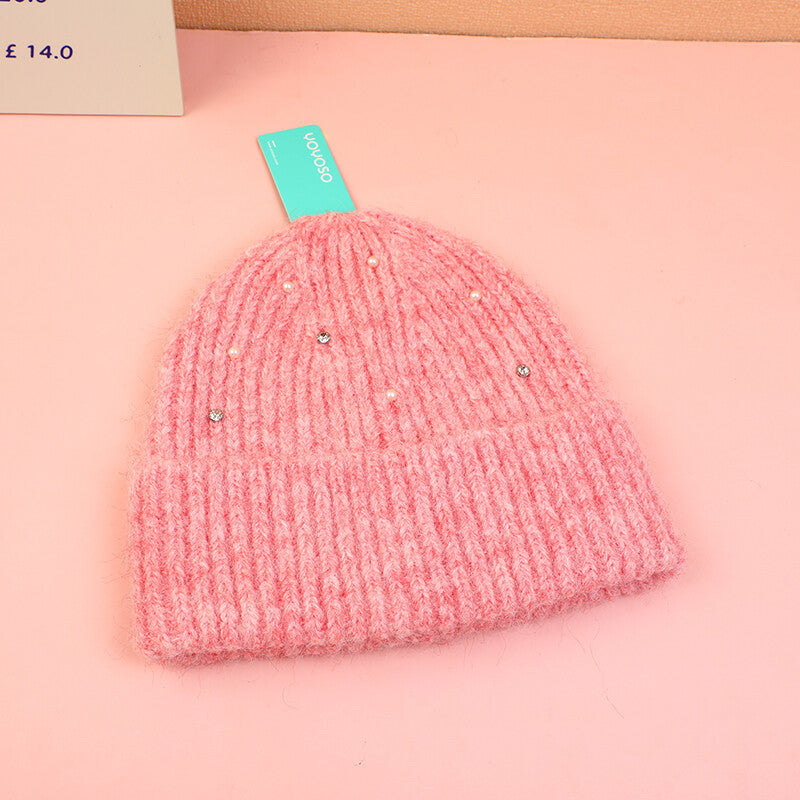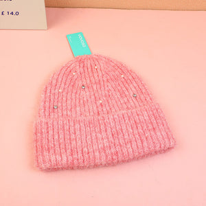 Cappello lavorato a maglia con strass-rosa