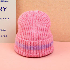 Cappello lavorato a maglia con colori contrastanti-rosa