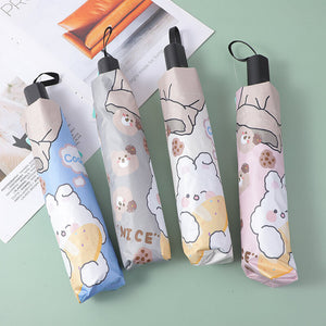 Divertente ombrellino con orso e coniglio