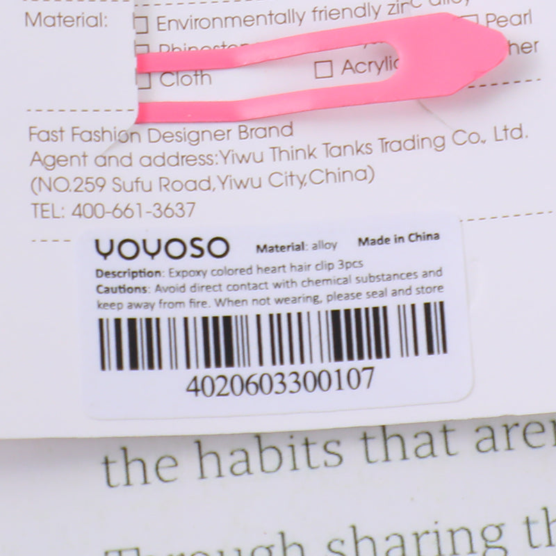Fermaglio per capelli a cuore colorato Expoxy 3pz