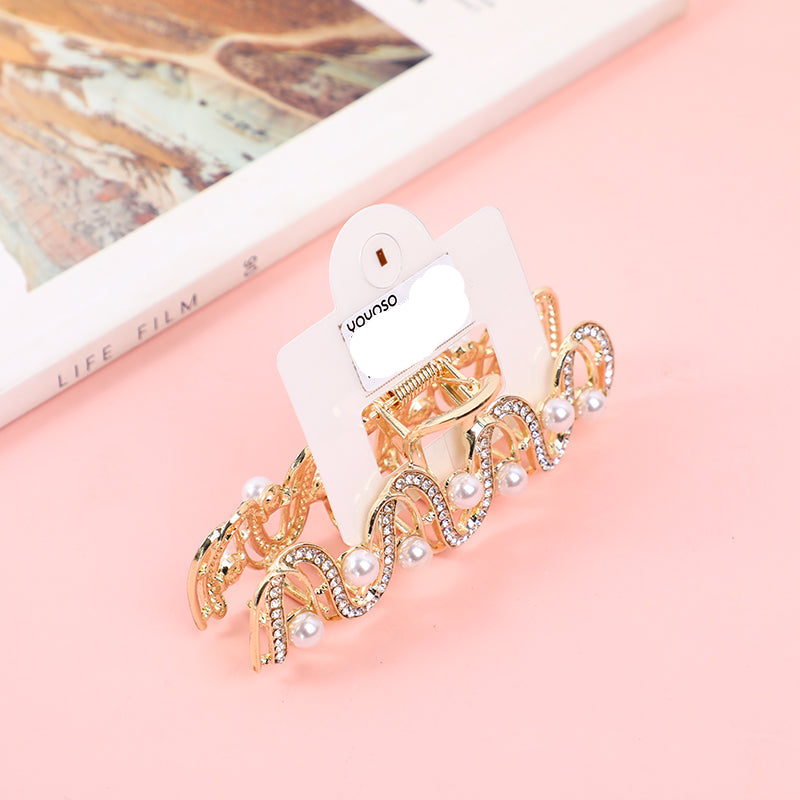Pinza per Capelli Ondulata in Lega con Perle