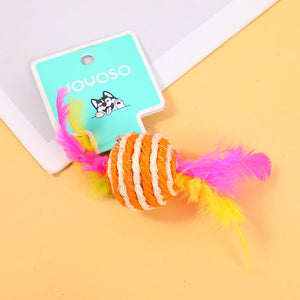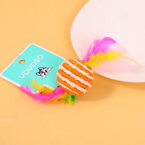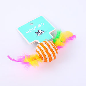 Palla gialla e bianca in piuma di canapa sisal giocattolo per cani-2