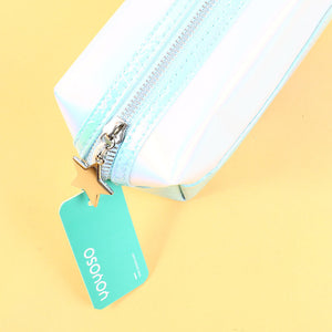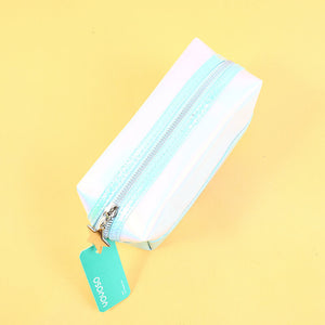 Borsa cosmetica quadrata in pelle lucida al laser