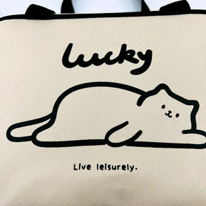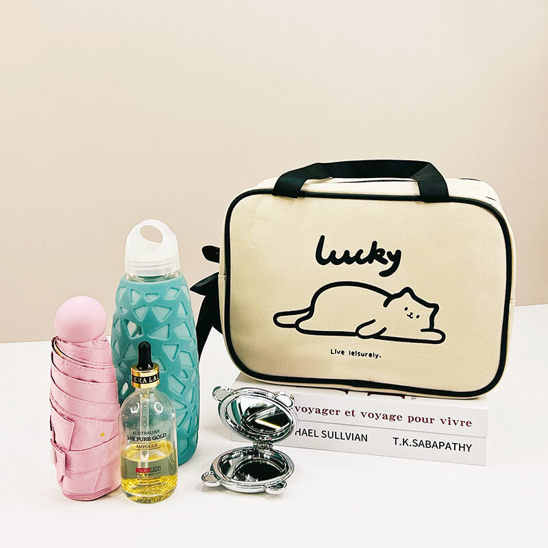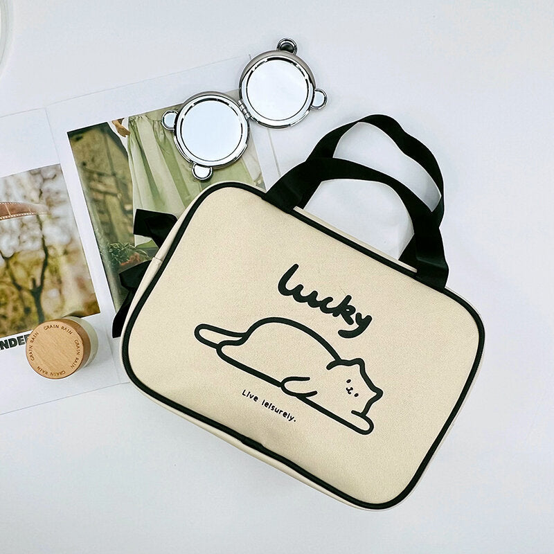 Borsa per il trucco rettangolare portatile di grandi dimensioni (serie leisurely kitten)-bianco sporco