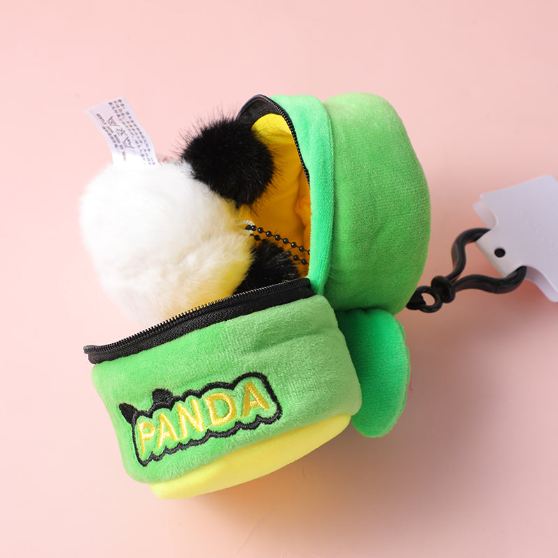 Panda grasso che sta a casa con scatola portaoggetti peluche portachiavi
