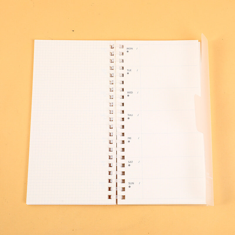 Quaderno della settimana a bobina morbida di Egg roll sister rose manor - linea orizzontale all'interno della pagina
