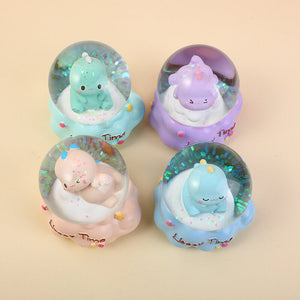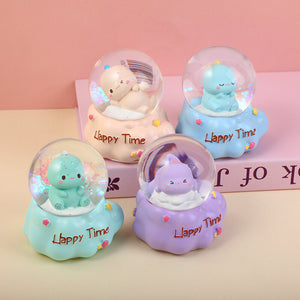 Piccolo dinosauro che scuote la mano della palla di neve con luce #65