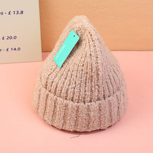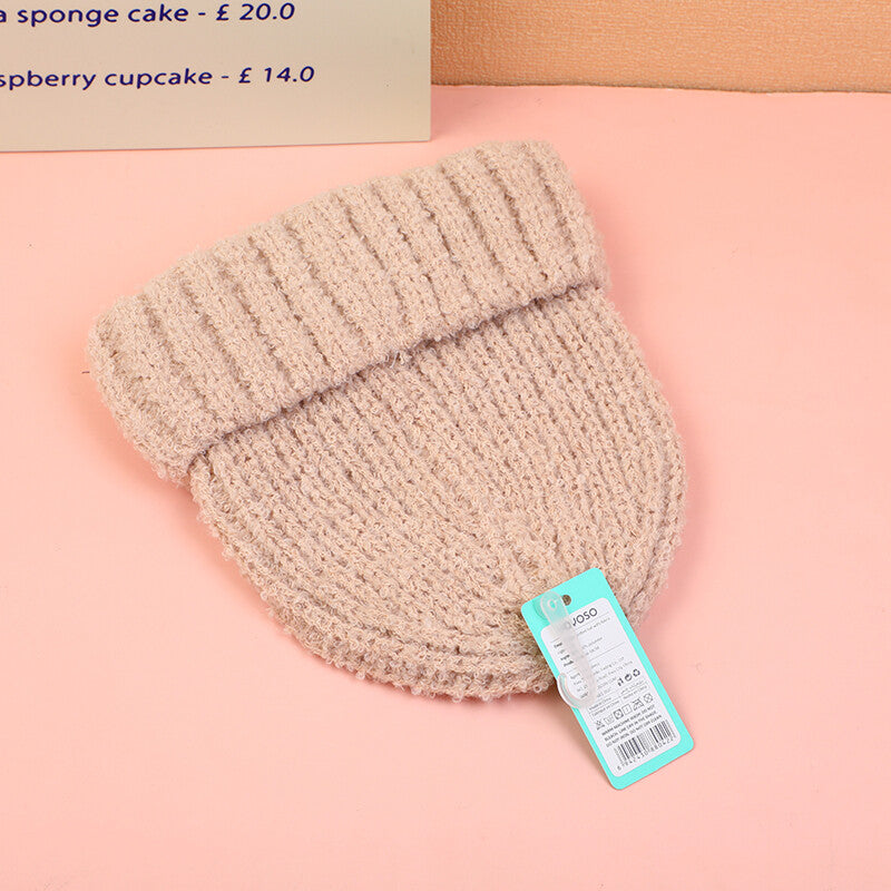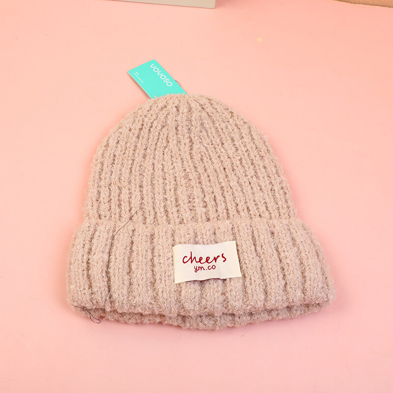 Cappello lavorato a maglia con logo in tessuto-beige