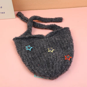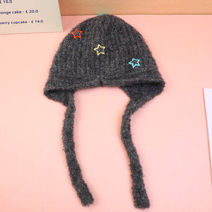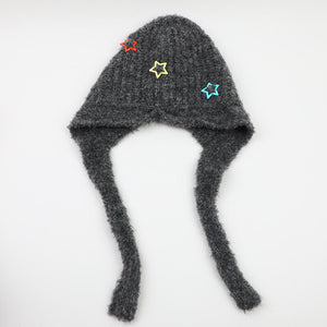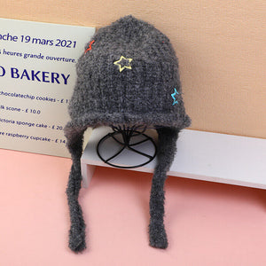Cappello lavorato a maglia con protezione per le orecchie a tre stelle-nero