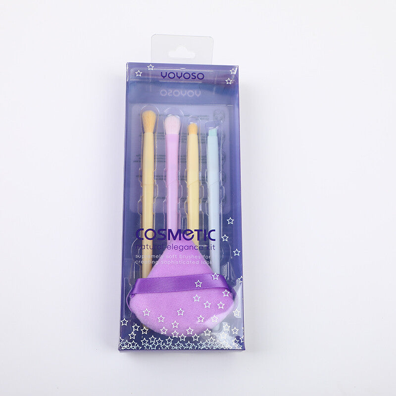 Set di pennelli per occhi dettagliati e di un piumino per cipria in polvere libera, in grado di soddisfare tutte le esigenze di trucco più specifiche.