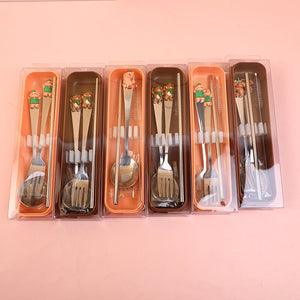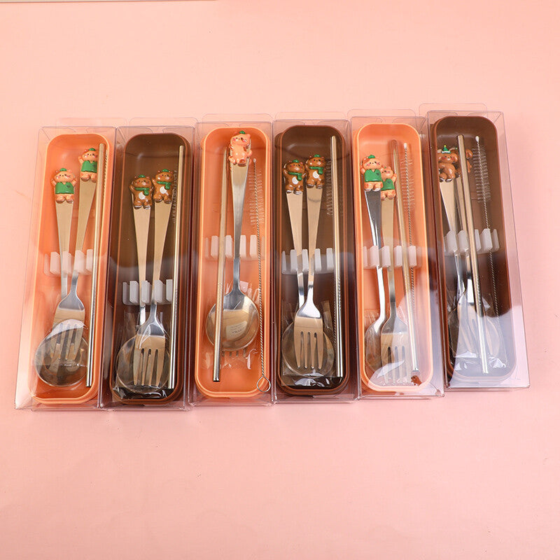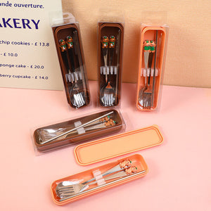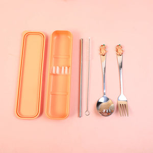 Set di cucchiaio, forchetta e cannuccia da viaggio Kitty Cat