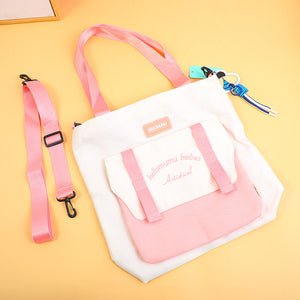 Borsa shopping semplice con tracolla rosa
