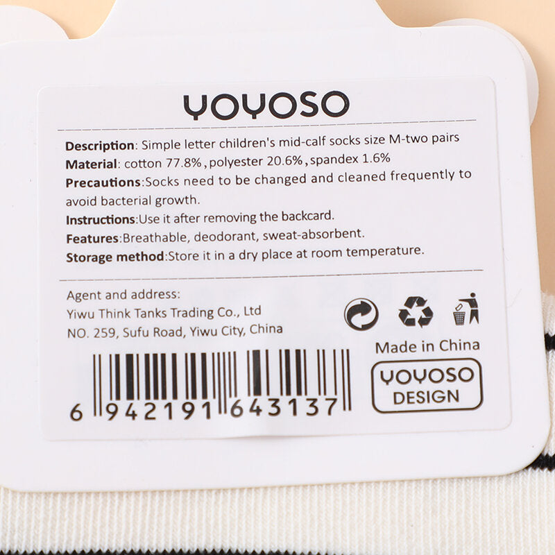 Calzini a metà polpaccio per bambini a lettera semplice taglia M-due paia