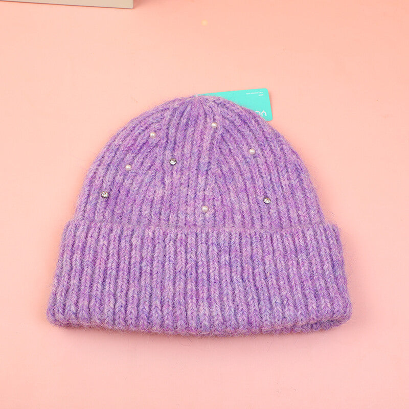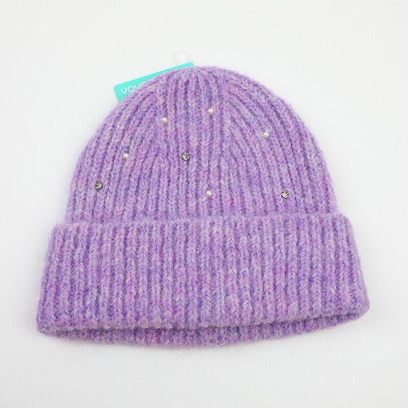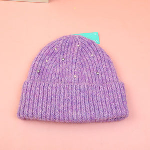 Cappello lavorato a maglia con strass-viola