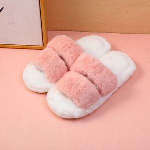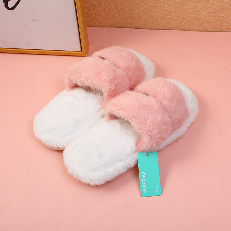 Pantofole da donna in cotone con due strisce a contrasto di colore - rosa (40-41)